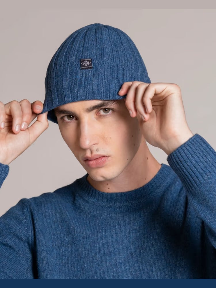 Cappello da uomo Impure con lavorazione a costine e vestibilità aderente, realizzato in morbida lana di agnello