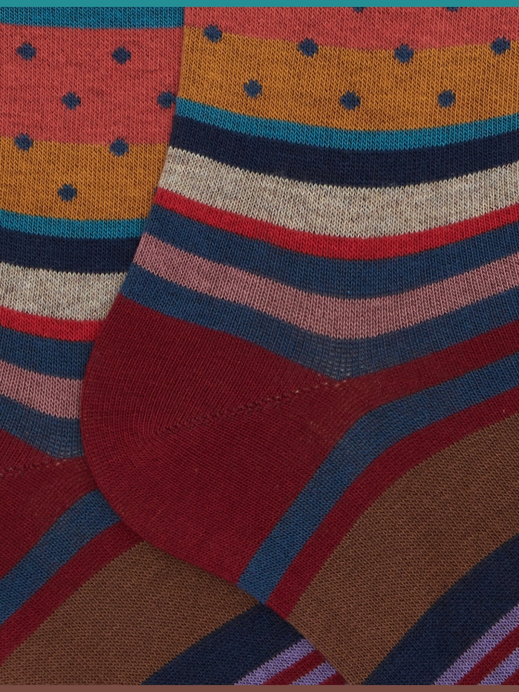 Calze da uomo Gallo realizzate in cotone morbido e traspirante, modello a fantasia righe con piccolo pois e vestibiltà elasticizzata senza costrizioni