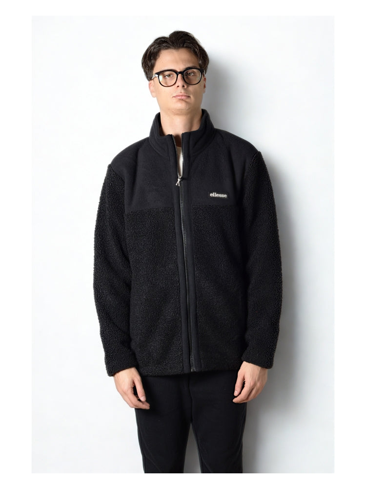 Felpa da uomo Ellesse con chiusura zip, contraddistinta dal materiale effetto furry abbinato al liscio cotone