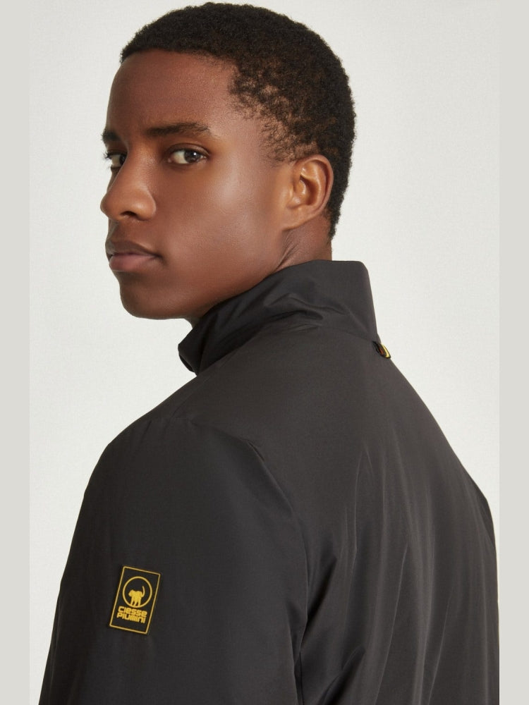 Giubbotto da uomo Ciesse Piumini modello giacca biker imbottita con ovatta 80 grammi, realizzata in poly taslan con finitura idrorepellente DWR. Vestibilità slim