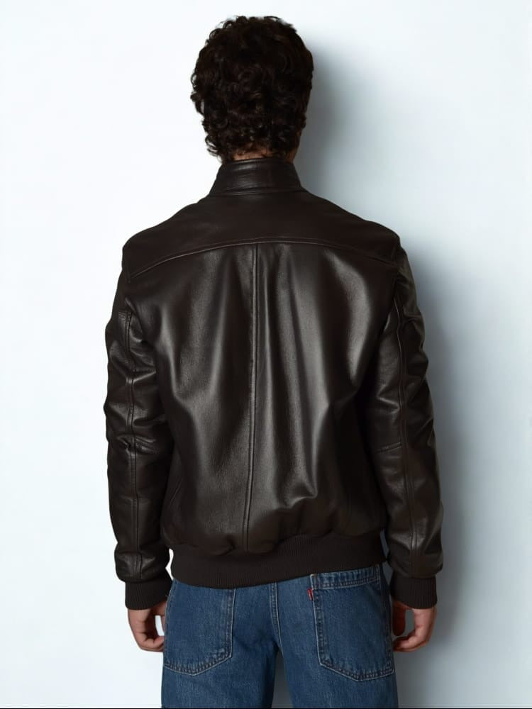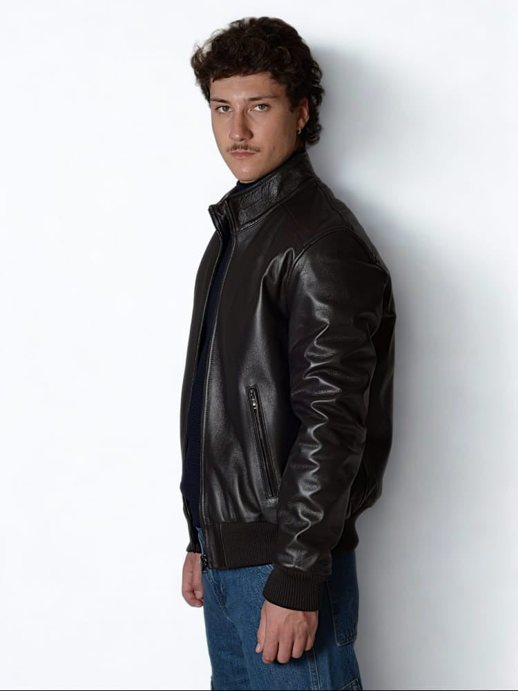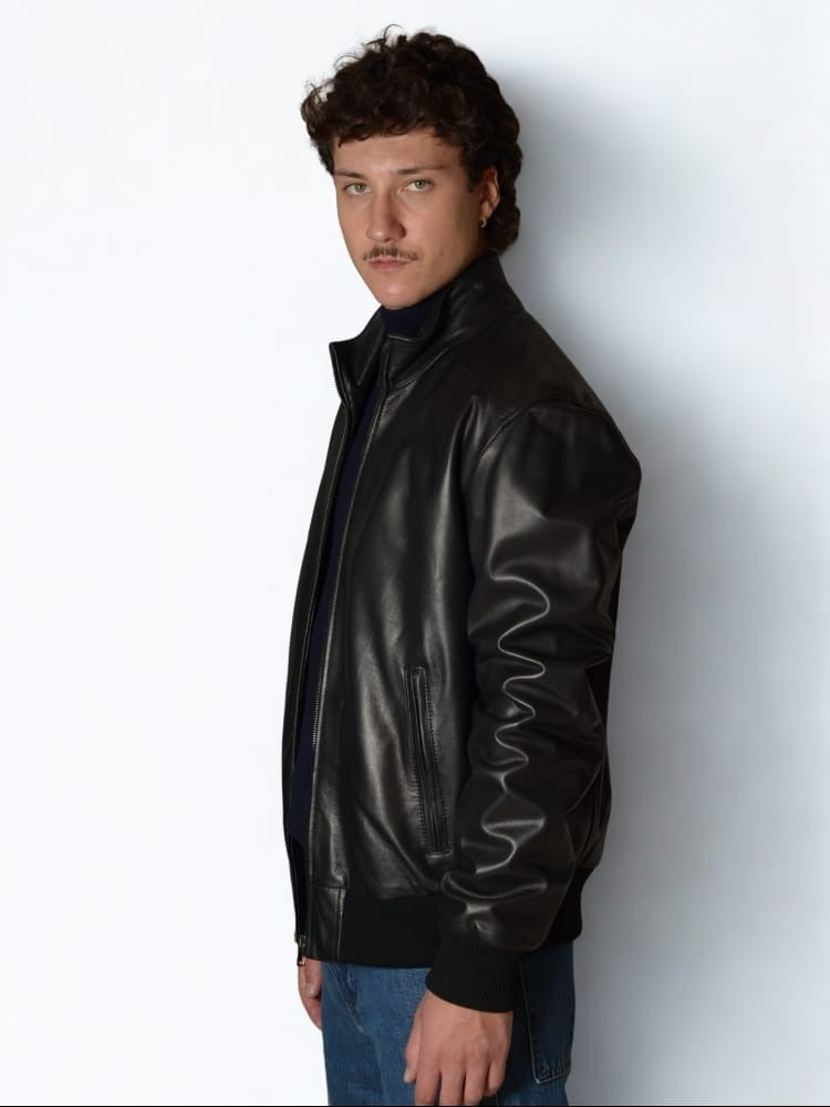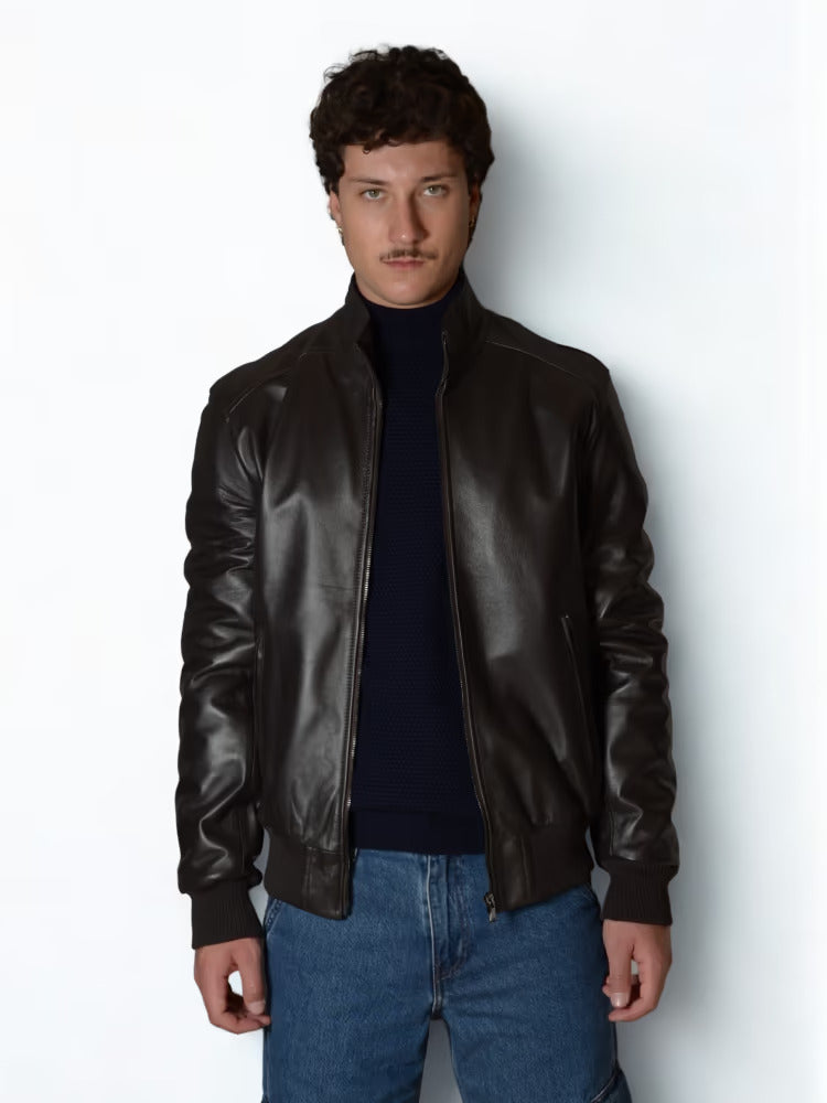 Bomber da uomo Masterpelle realizzato in morbida nappa, modello con colletto e chiusura zip