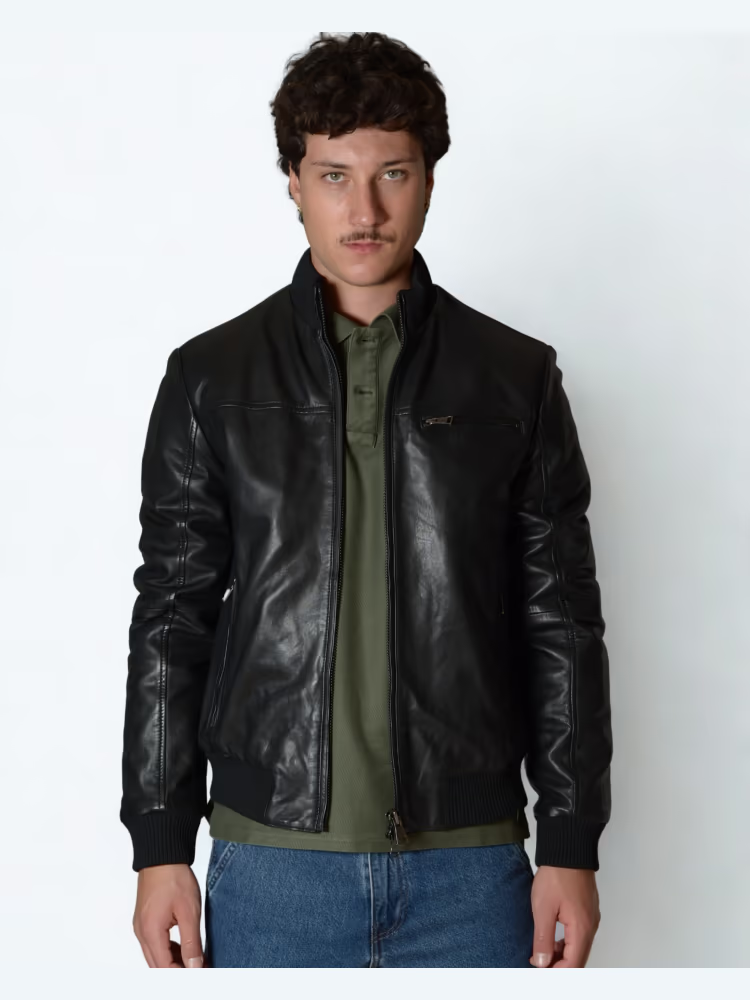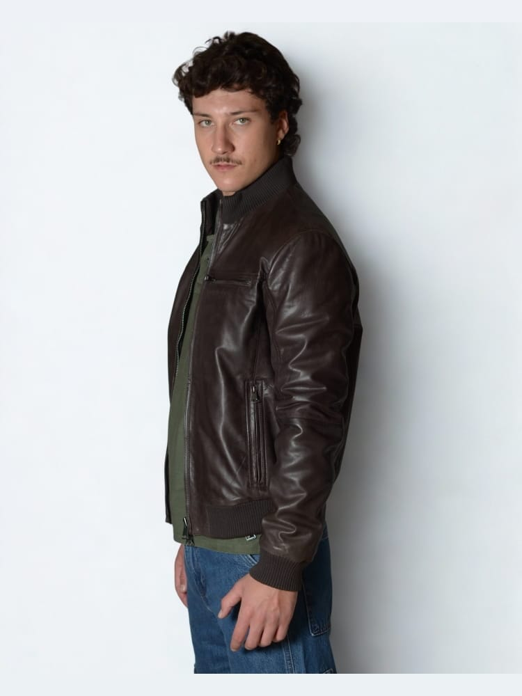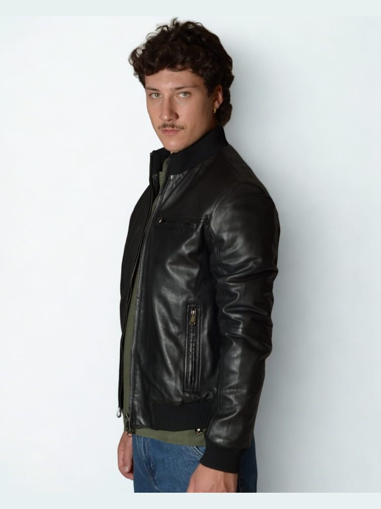 Giacca da uomo Talenti in pelle, modello biker in pregiata pelle con bordi elasticizzati