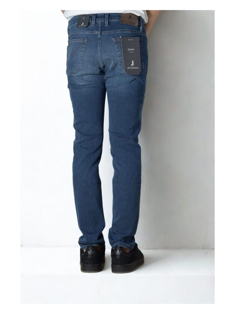 Pantaloni da uomo Jeckerson modello jeans cinque tasche a toppa, con vestibilità skinny
