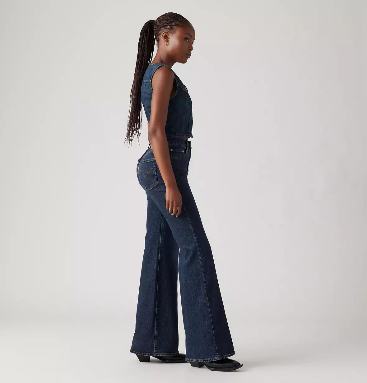 I Jeans Ribcage Bell Levi’s® uniscono silhouette vintage e femminilità moderna con gamba flare ispirata agli anni ’70 e vita super high-rise che valorizza la figura, creando una linea allungata e definita. Perfetti per look contemporanei con denim dal carattere autentico.