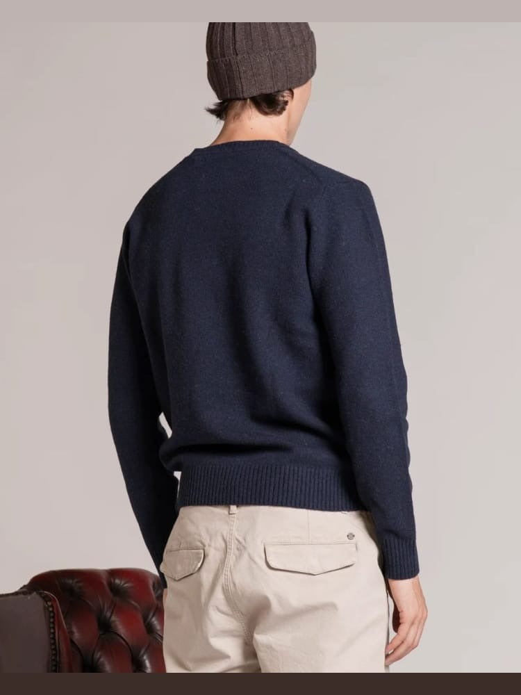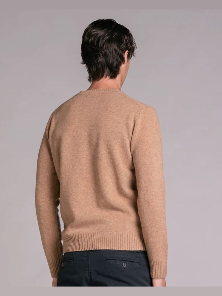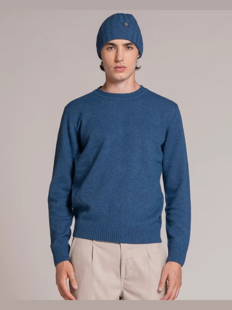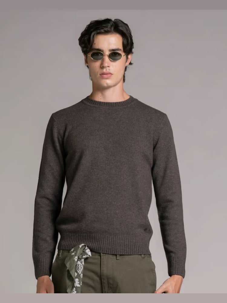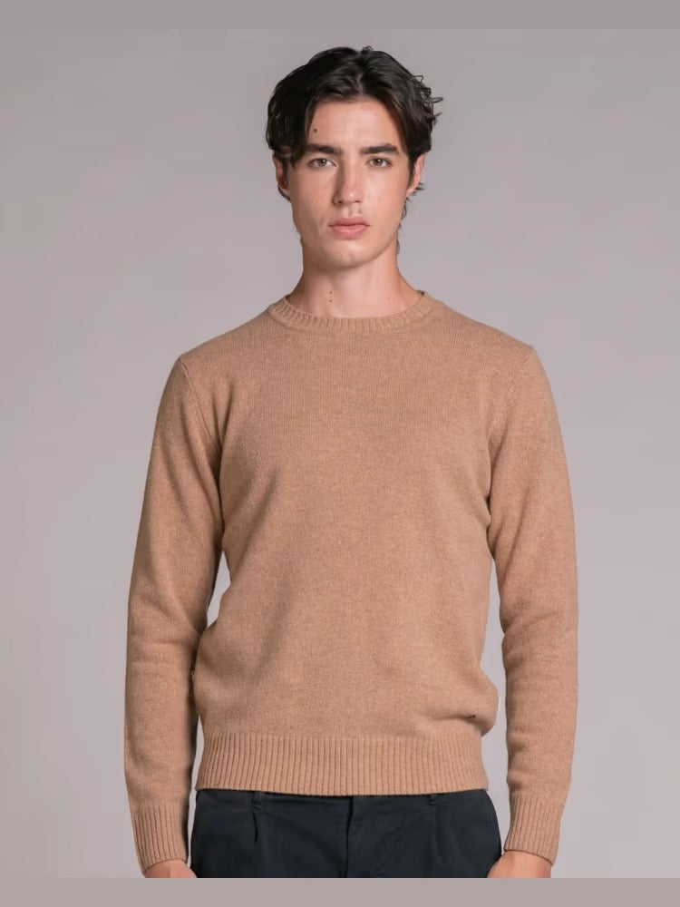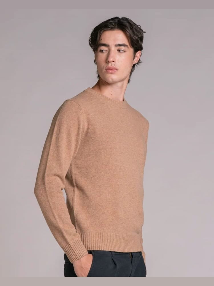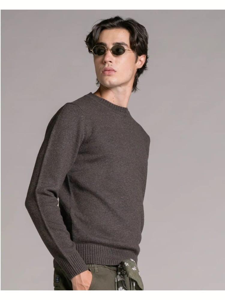 Maglione da uomo modello girocollo a manica lunga con bordi a costine, realizzato in misto lana di agnello
