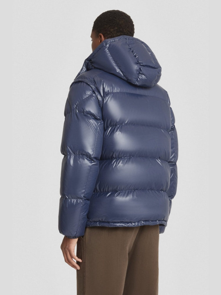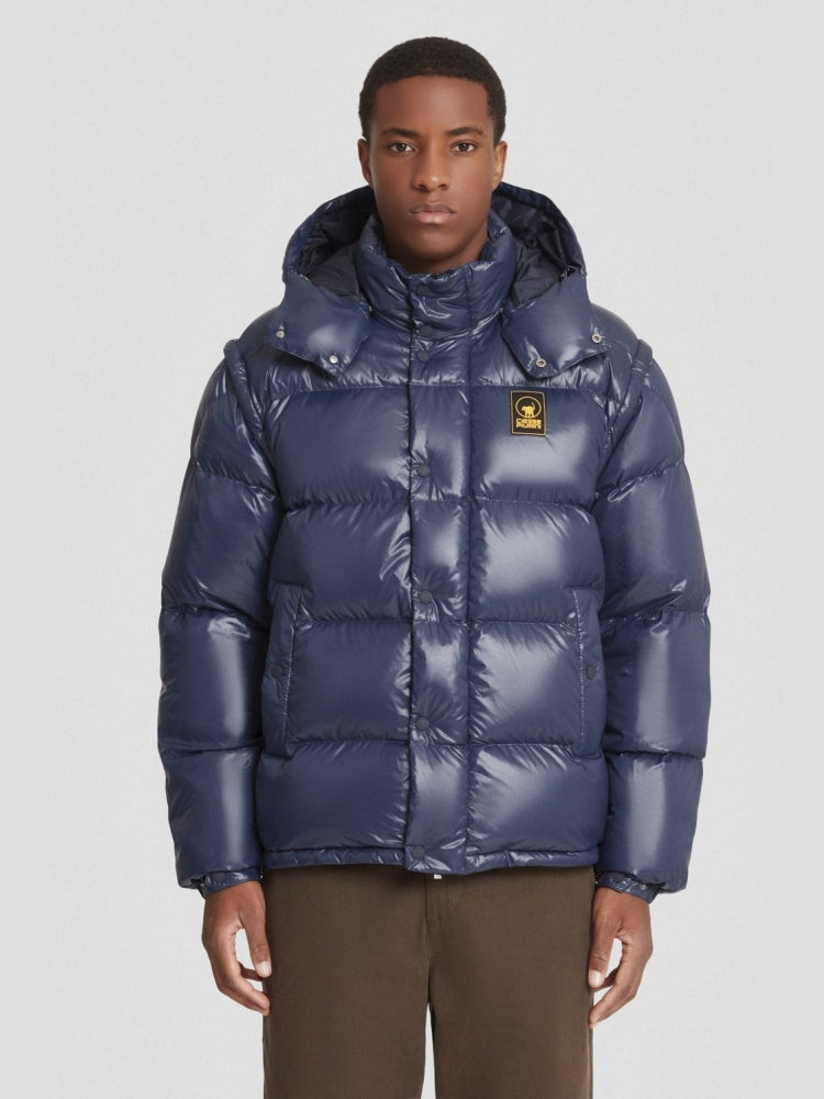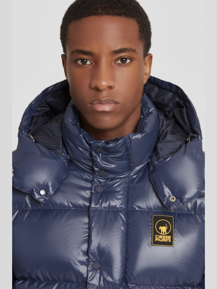Giubbotto da uomo Ciesse Piumini dalla finitura trapuntata lucida, modello con cappuccio e maniche removibili per essere trasformato in un gilet.