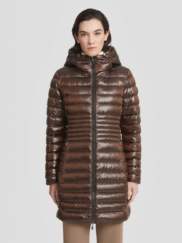Giubbotto da donna Ciesse Piumini, modello piumino con cappuccio e chiusura zip. Il modello è reversibile, da un lato trapuntato lucido in nylon, dall'altro taffetà liscio con finitura opaca
